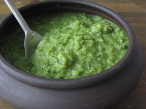 Laita kattilaan tuoreet herneet ja lisää vettä niin, että herneet peittyvät juuri ja juuri. Keitä herneitä hiljaisella lämmöllä niin kauan kunnes ne ovat hyvin kypsiä ja osittain hajonneet. Soseuta herneet keitinveden kanssa. Laita soseutettujen herneiden joukkoon hienonnettu sipuli ja hienonnettu tuore persilja. Keitä kunnes sipulit ovat kypsiä. Lisää pippuria, kanelia, inkivääriä, hyppysellinen sahramia ja riittävästi suolaa. Kuumenna ja lisää murustettu leipä ja viinietikka. Kiehauta ja tarjoile.